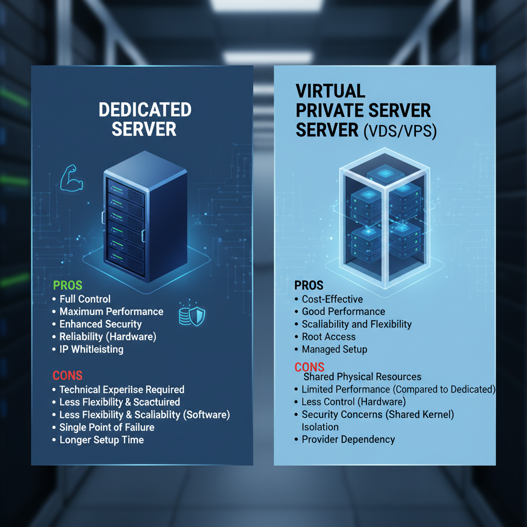 С точки зрения экономии бюджета VDS предлагает более выгодные условия. Стоимость начинается от нескольких сотен рублей в месяц, тогда как выделенный сервер обойдется в несколько тысяч даже при базовой конфигурации.
